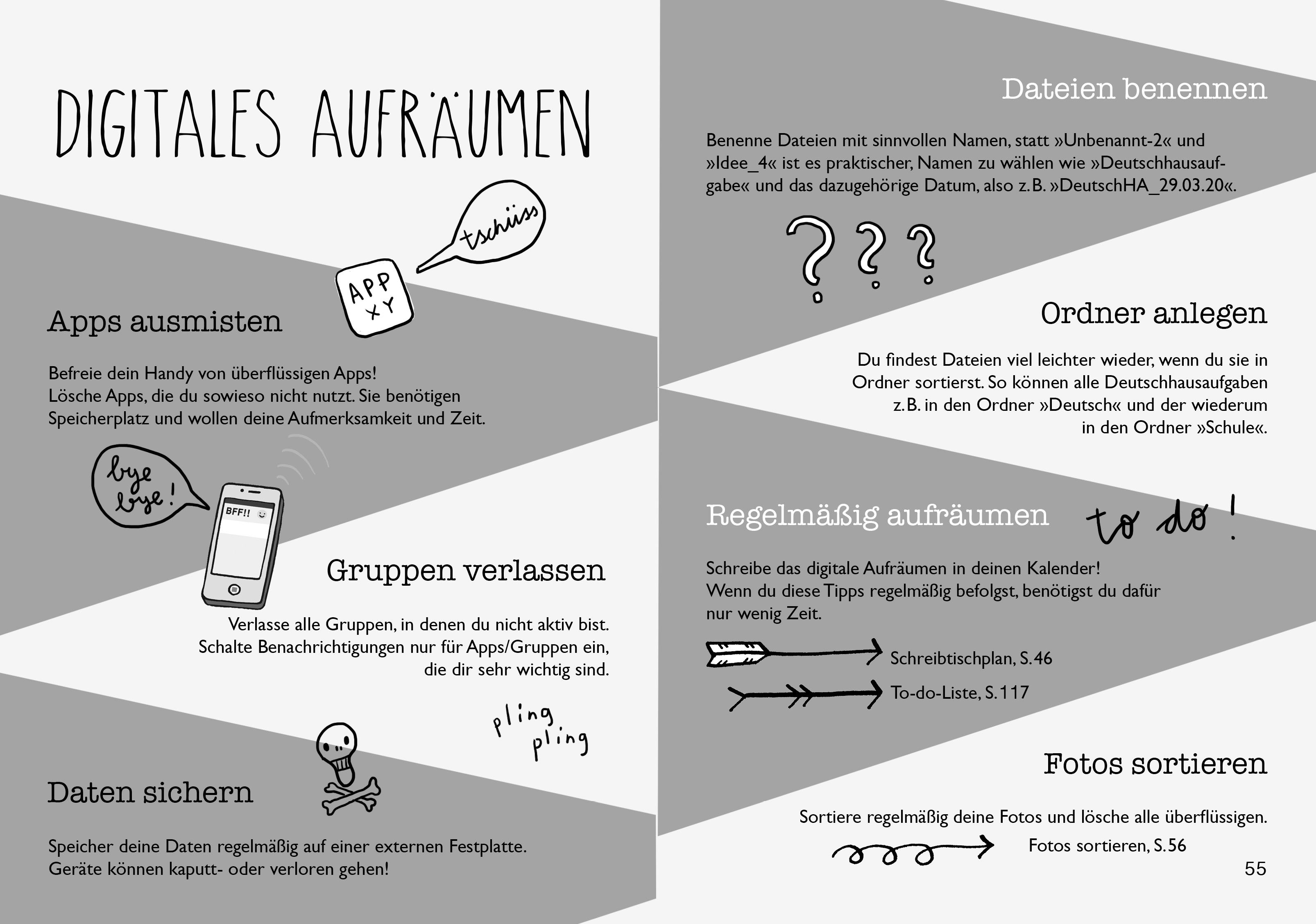 Spätestens seit der erfolgreichen Netflix-Serie mit Marie Kondo ist Aufräumen Trend. Und wo lohnt es sich mehr als in einem Kinderzimmer? Dabei heißt Aufräumen und Ausmisten nicht, dass alles picobello sein muss. Es geht vielmehr darum, dass man ein Zimmer hat, in dem man sich wohlfühlt. Mit diesem Buch können Mädchen ab 9 ihr eigenes kleines Reich organisieren und verschönern – und dabei ganz viel Spaß haben.