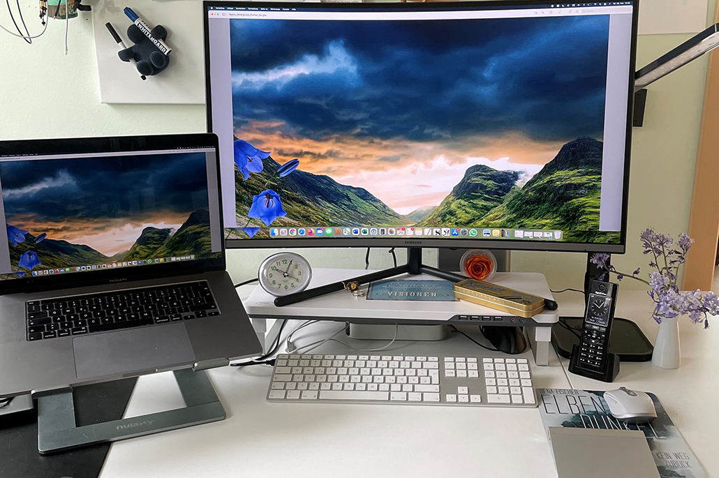 Eine Schreibroutine einzuhalten, ist gar nicht so einfach. Meistens sieht der Tag jedoch so aus: Nach dem Morgenspaziergang mit meiner Berner Sennenhündin Kira im Wald, wenn der Kopf erst einmal frisch durchgepustet ist, setze ich mich an den Schreibtisch und lese das durch, was ich am Vortag geschrieben habe. Das hilft mir einerseits, wieder in die Handlung einzutauchen und andererseits kann ich so erste grobe Überarbeitungen vornehmen. Danach schreibe ich weiter bis ca. 16 Uhr. Der weitere Nachmittag ist dann ausgefüllt mit Recherchearbeit, Social Media, etc. Manchmal schreibe ich nach dem Abendessen bis spät in die Nacht. Ich liebe die Stimmung, wenn im Haus Ruhe eingekehrt ist, Kira neben mir unter dem Schreibtisch liegt und leise vor sich hin schnauft und die Dunkelheit uns wie ein schützender Mantel umfängt. Kein Postbote, kein Telefon wird mich jetzt stören. Die besonderen Blüten meiner Texte erblühen meist in diesen Nachtstunden.