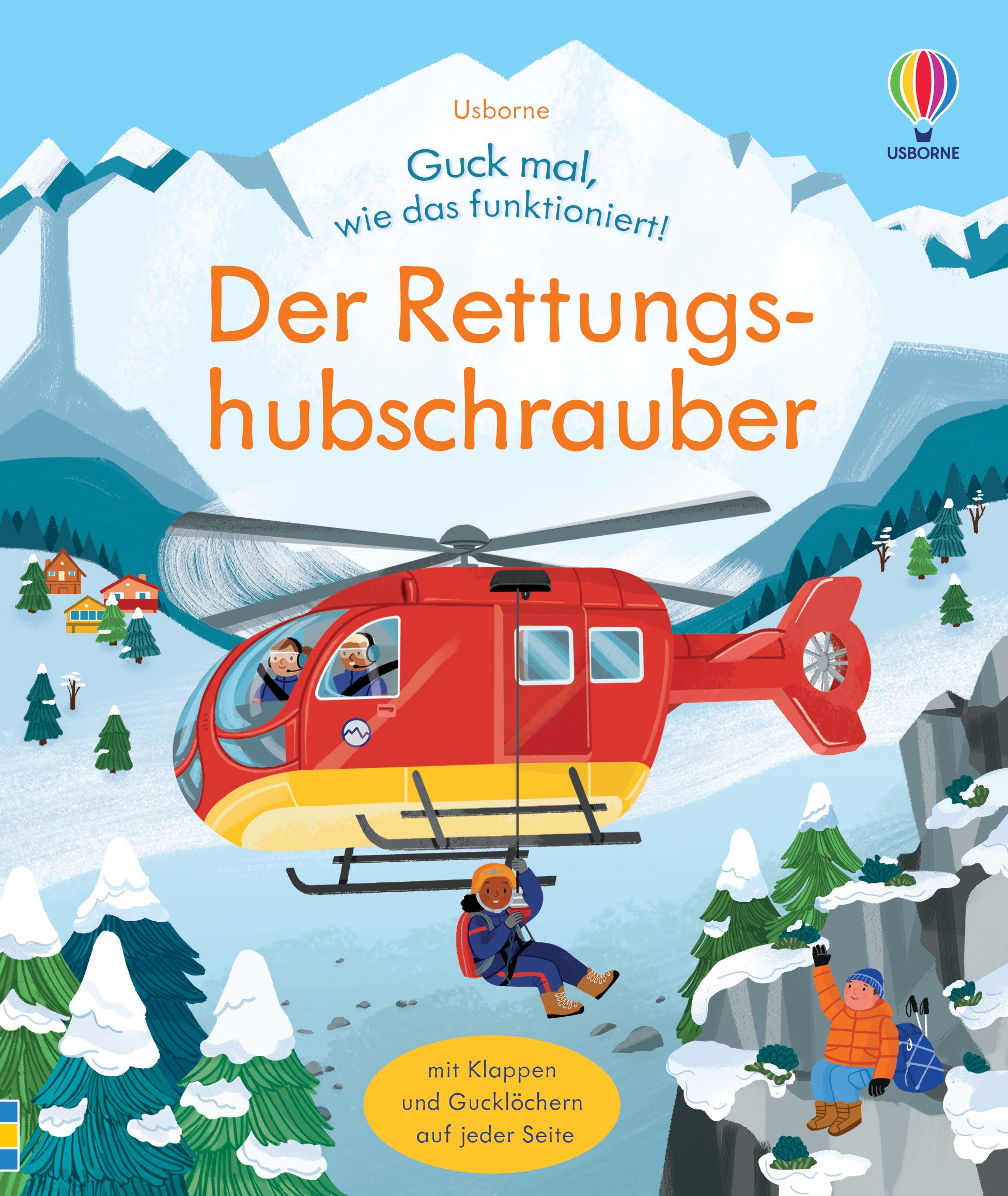 Klappenbuch mit spannenden Einblicken in eine Bergrettung mit einem Hubschrauber – ab 3 Jahren