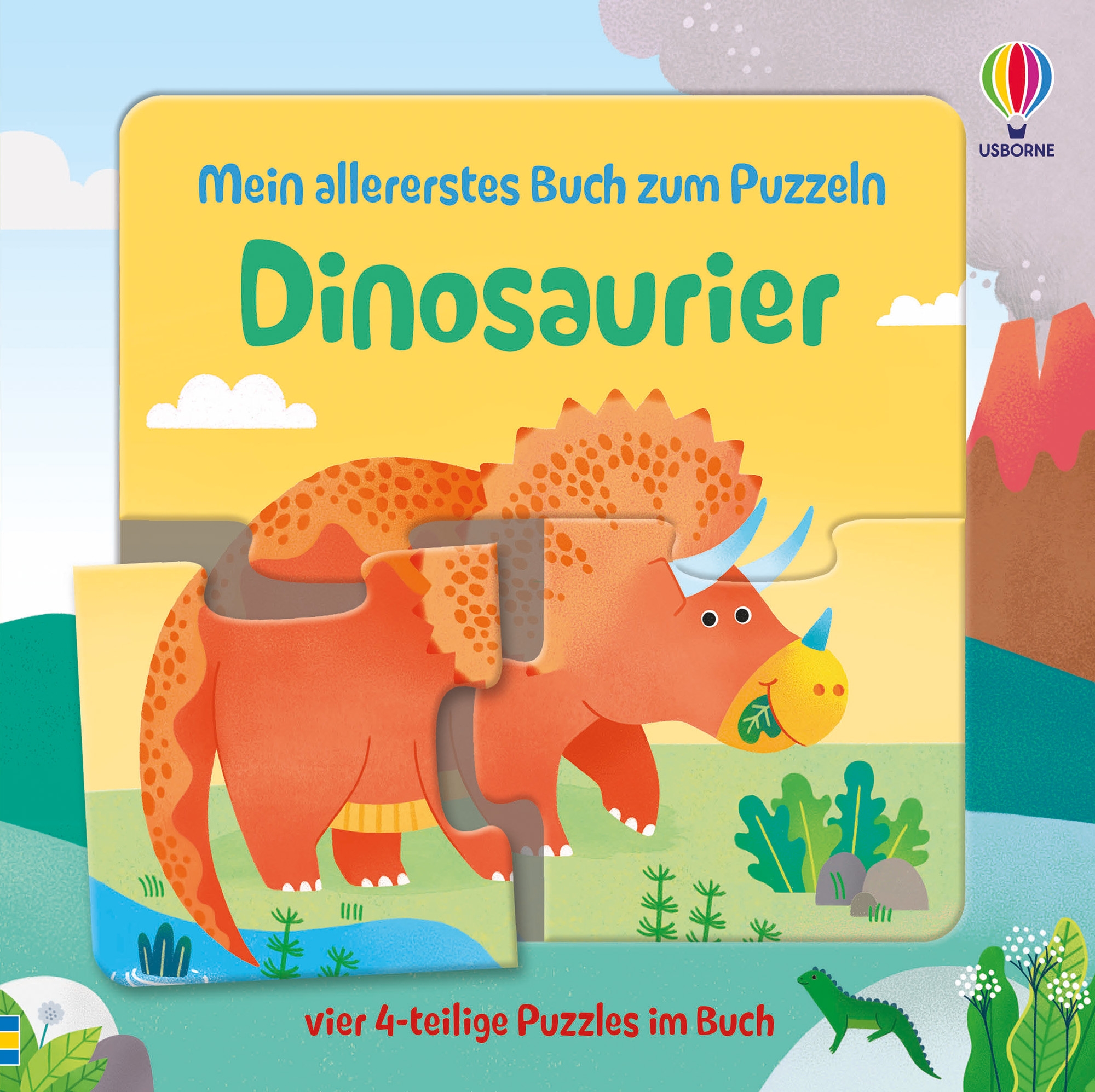 Lerne vier Dinosaurier kennen und puzzle sie zusammen. Eine Bildvorlage unter jedem der vier 4-teiligen Puzzle hilft beim Zusammensetzen. Ein dinostarker Vorlese- und Puzzlespaß, der ganz nebenbei die Auge-Hand-Koordination und Konzentration fördert. Die Puzzleteile können immer wieder sicher im Buch verstaut werden.