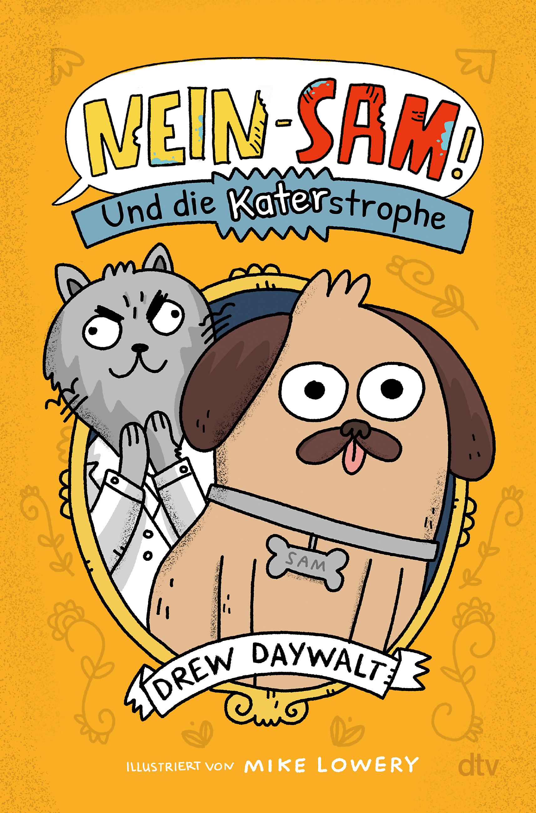 Nein-Sam lebt noch immer bei den Petersons und nimmt seine Aufgabe als Beschützer der Familie sehr ernst. Neu ist, dass Miau, sein Katerfreund, nun sprechen kann (was an Sams Sprachunterricht liegen muss, nicht an den Experimenten der Petersons). Doch anscheinend ist Miau in Gefahr! Ständig taucht dieser Postbote auf und will Miau ein verdächtiges Päckchen liefern. Außerdem hat Justin einen neuen Freund. Sam will keine voreiligen Schlüsse ziehen. Aber Dean ist blass und treibt sich auf einem Friedhof herum. Ganz klar: Dean ist ein Vampir! Noch klarer: Nein-Sam hat alle Pfoten voll zu tun!