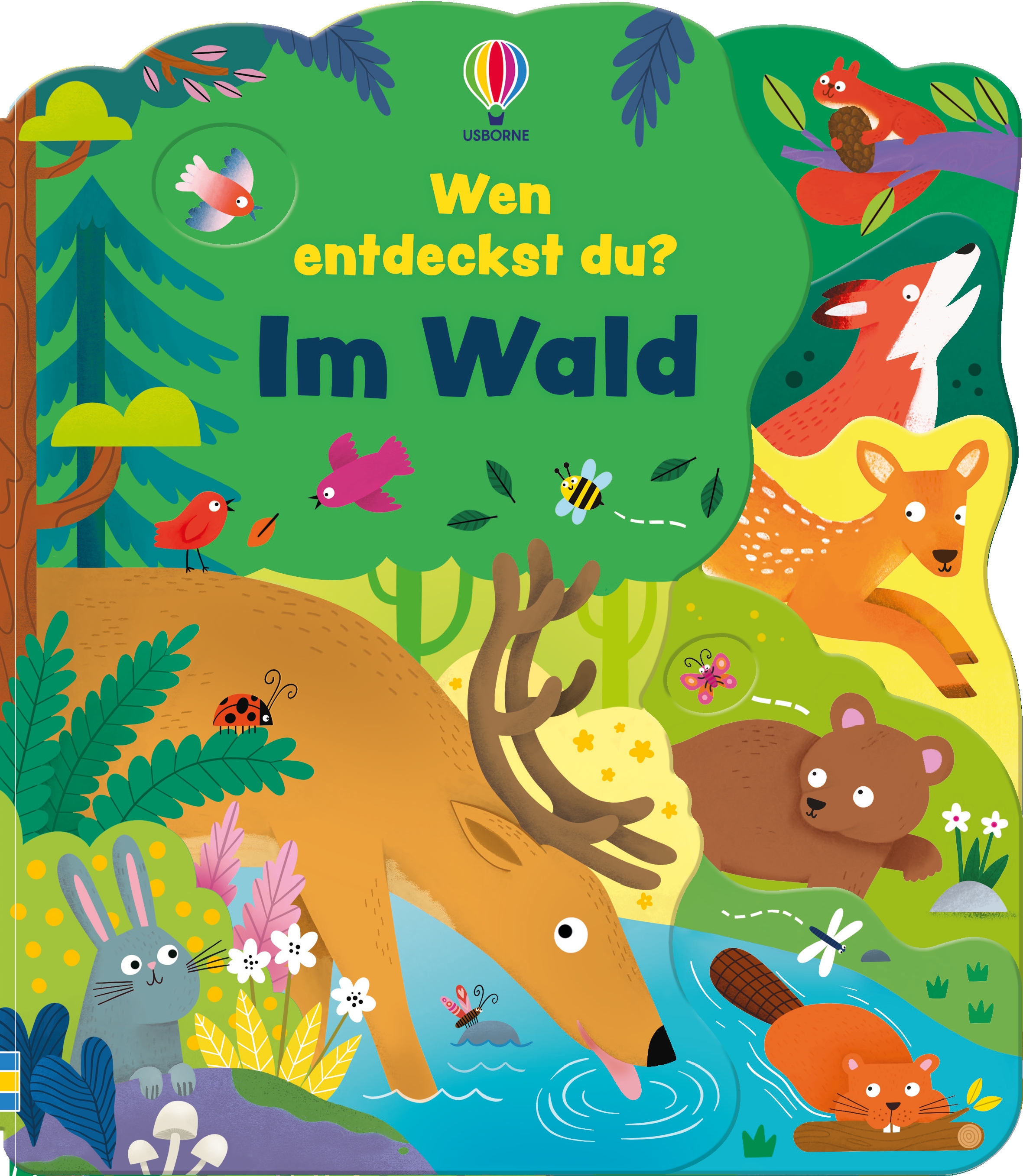 Wer schaut dort hinter den Büschen hervor? Und wer versteckt sich im Geäst? In diesem Buch entdecken Kinder viele Tiere, die im Wald zu Hause sind – fleißige Biber, umherspringende Rehkitze und spielende Füchse. Die speziell geformten Seiten wecken Neugier und erleichtern das Umblättern.